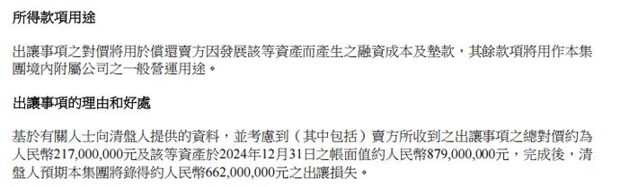 清盘人在公告中说明,交易对价是参照资产市值经公平磋商确定。尽管两项目截至2024年末账面值约8.79亿元,本次交易预计导致超6.6亿元账面损失,但在清盘背景下,快速变现与责任切割的优先级远高于资产价值。